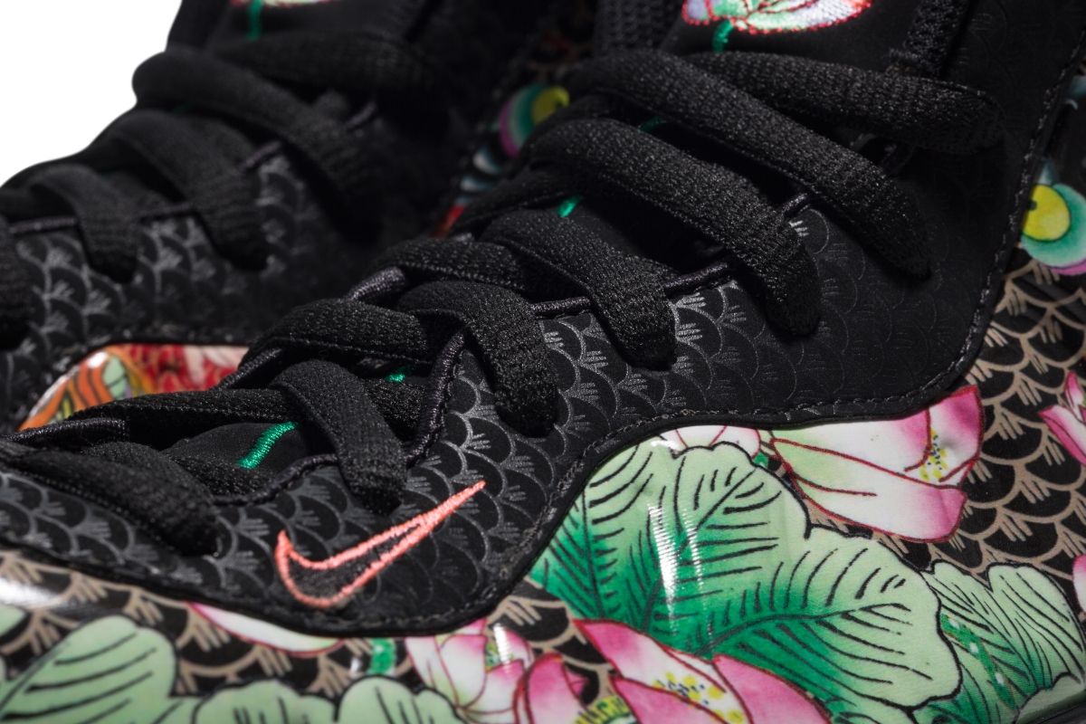 中国語では“魚”の発音と“余”の発音とが同じで、“年々有魚(余)”という言葉がある。毎年お金が残るゆとりのある生活ができるようにと言う願いを込めて毎年春節に魚料理を食べるなど、伝統的に縁起がいい魚をイメージした魚鱗模様を全体にちりばめ、アッパーは吉祥図案の蓮年有魚から太った子供、魚と蓮の花のグラフィック、インソールにも中国語で"蓮年有△(食へんに余)(連年有余=年々有余と同意)"の文字がプリントされます